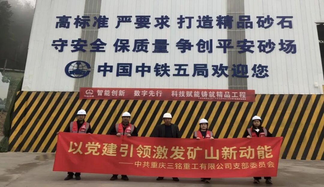 党旗飘扬在一线,党建赋能促发展。近日,中共重庆三铭重工有限公司支部委员会牵头,组织营销中心、技术研发中心、客户服务中心骨干力量,开展“党建引领矿山行”专项活动,深入西部基建高铁项目地材加工场及砂石骨料生产基地,以“高标准品质、高效能智能、绿色化安全”为核心导向,实地检验高标料解决方案落地成效,用党建红引领产业蓝,为国家基础建设与交通强国战略贡献三铭力量。