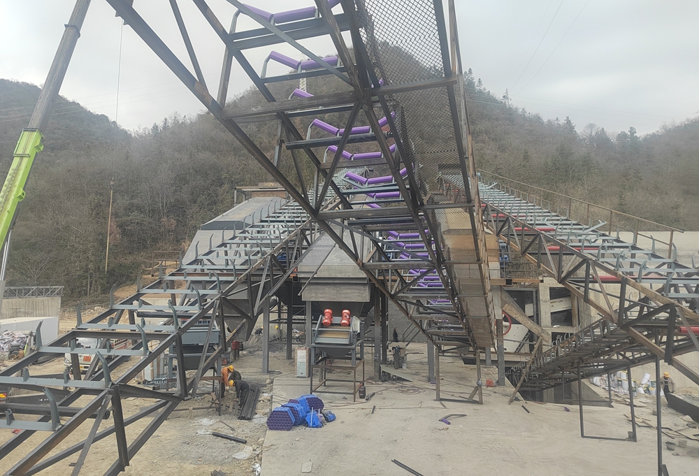 为实现资源循环利用与工程建设的高效协同,新建宜涪高铁湖北段鹤峰站碎石场项目如期建设。该碎石场全套设备由重庆三铭重工提供,以经济环保、节能高效、智能安全的高标准设计。其粗碎环节采用半下沉式设计,利用自然地形建造,减少占地面积,合理布局生产线。