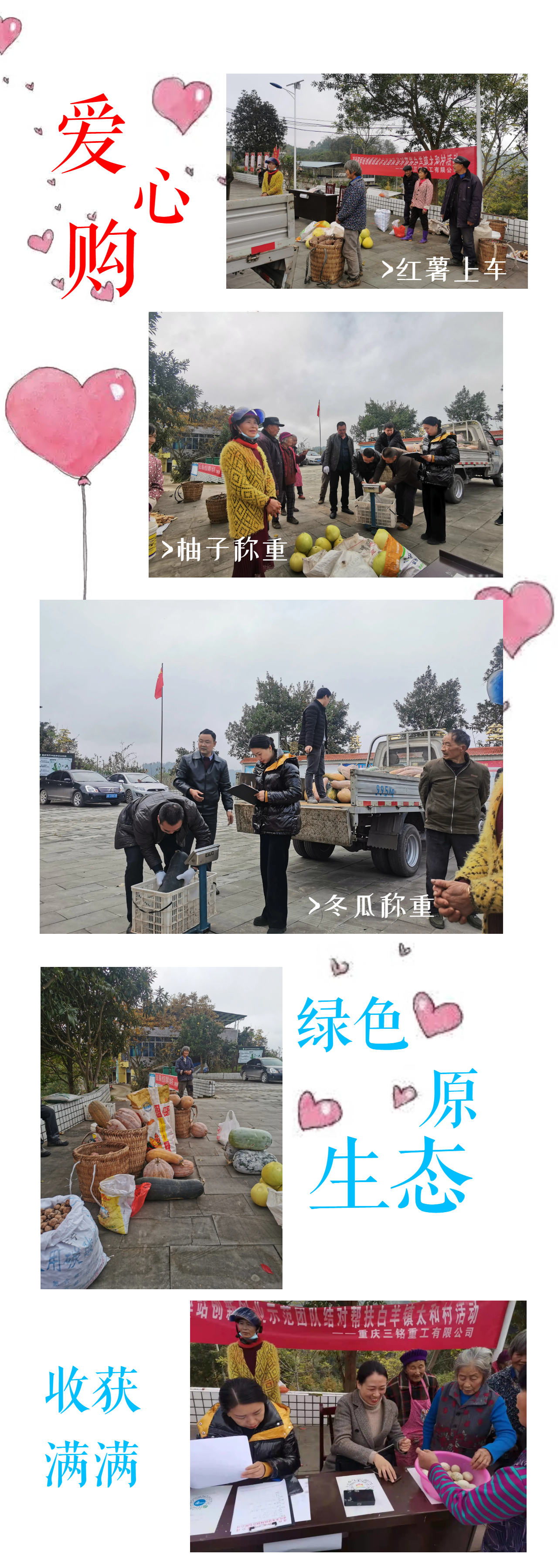 In order to further consolidate the effect of poverty alleviation and actively help low-income peasant households to increase their income, on November 20th, the innovation and entrepreneurship demonstration team of mobile crushing Station of Chongqing Sanming Heavy Industry Co., Ltd. went to Taihe Village, Baiyang Town, to carry out the "buy instead of help" love purchasing activity.