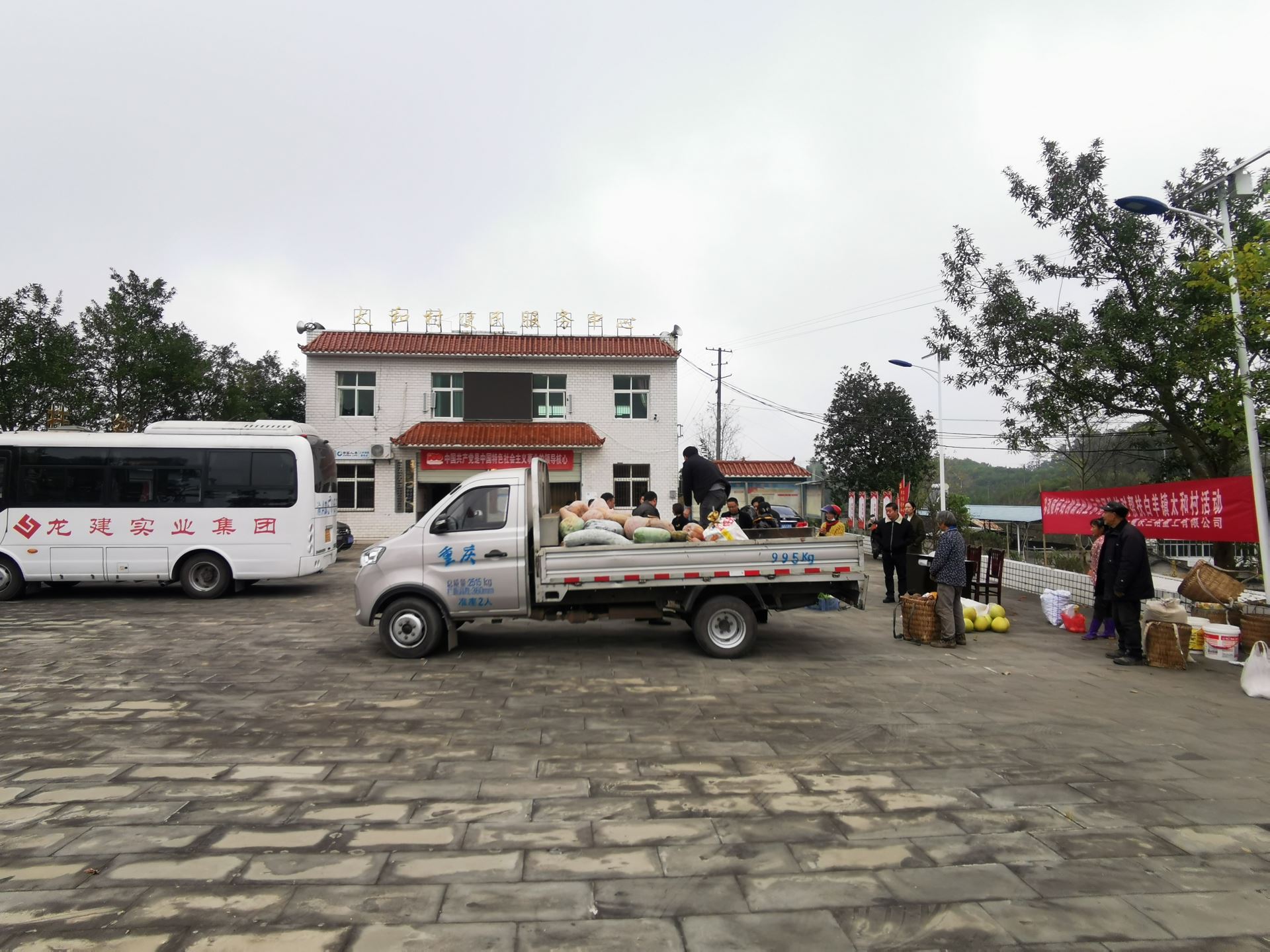 In taihe village committee square, the village of more than 20 villagers brought many sweet potato, winter melon, pumpkin, lotus root, grapefruit, walnut, goose eggs, duck eggs, native eggs, red potato powder, free range chicken and duck and other agricultural and sideline products. Sanming Heavy Industry door-to-door acquisition, and are 20% above the market price to buy.