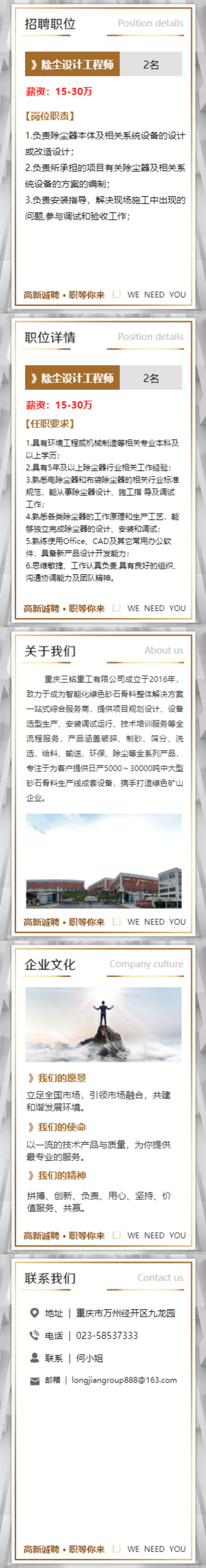 高新诚聘:除尘设计工程师 2名,打造智能化绿色砂石骨料系统环保除尘全新解决方案。