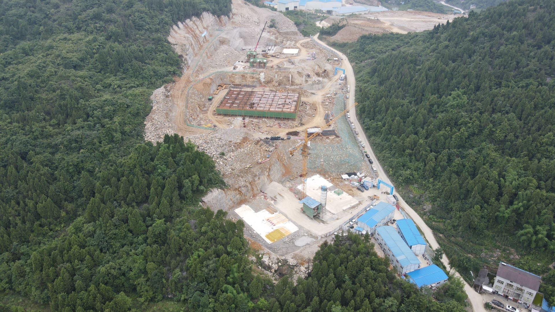 目前,项目正在紧张有序的建设中,处于混泥土基础建设阶段,主机设备位置混凝土基础、成品库钢板料仓基础架设已具雏形,预埋环板、预埋件等工作项目正加速推进。