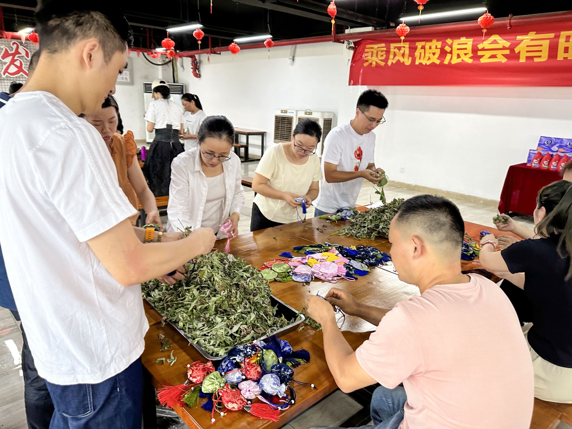 另一边,三铭也为员工准备了,端午包香囊活动。盛装香草袅袅香,袋里留香百年长。佩香囊,是端午节传统习俗之一,除了芳香辟秽之外,也承载着制作者美好的祈愿与祝福。活动现场,大家兴致盎然地亲自动手体验香囊的制作。细嗅着中草药的气息,体验着指尖上的浓情端午,小小香囊在手中,每个人收获满满的快乐,活动现场也散发着浓浓的清幽的香气,沁人心脾。