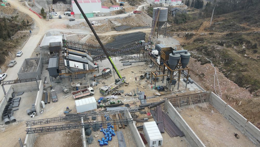 为实现资源循环利用与工程建设的高效协同,新建宜涪高铁湖北段鹤峰站碎石场项目如期建设。该碎石场全套设备由重庆三铭重工提供,以经济环保、节能高效、智能安全的高标准设计。其粗碎环节采用半下沉式设计,利用自然地形建造,减少占地面积,合理布局生产线。