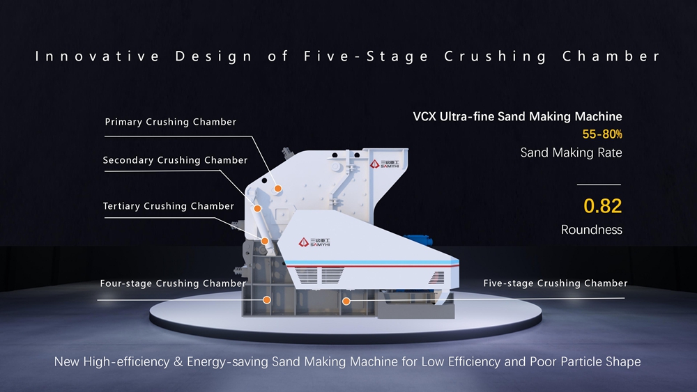 Application: For sand making with aggregate less than 15mm, especially suitable for guami (5-10mm) sand making, to solve the pain point of guami in the current market; Compared with the common sand making equipment in the market, the feed size range is larger, and mixed materials less than 150mm can be directly entered into sand making.