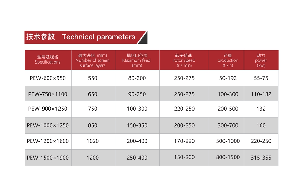 进料粒度:≤1700mm